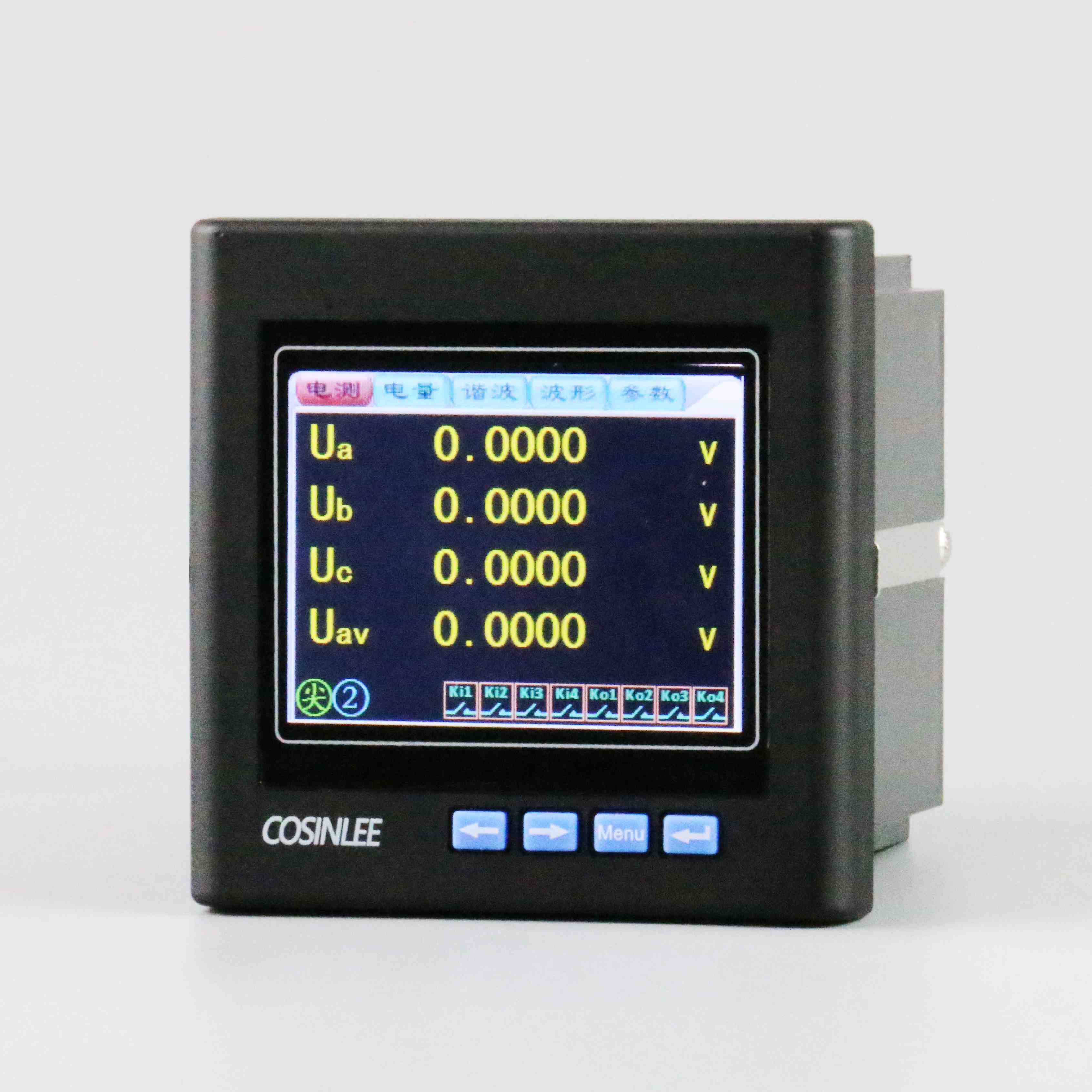 网络多功能彩屏电力仪表采用现代数字信号处理芯片和高精度的电能计量芯片,能够精确稳定地测量三相电网中的所有常用电力参数:三相电压、三相电流、有功功率、无功功率、视在功率、电网频率、功率因数、电能、电压不平衡度、电流不平衡度、电压谐波、电流谐波、零序电流、有4种费率8时段功能,并带有数字通迅接口、电能脉冲输出功能。